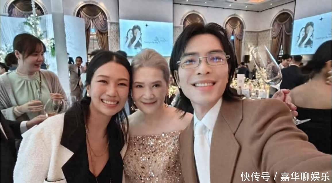 萧敬腾穿着棕色西装和黑色高跟皮鞋,留着长发,在酒席上突然站起来唱《王妃》,他一边跳一边唱,动作幅度很大,看起来有点夸张,网友们直接炸锅,说他这是“姨化审美天花板”,话题很快冲上热搜,他的妻子林有慧全程陪在身边,之后还和许母一起合影,三个人都笑得自然,让人感觉他们夫妻关系确实稳定。